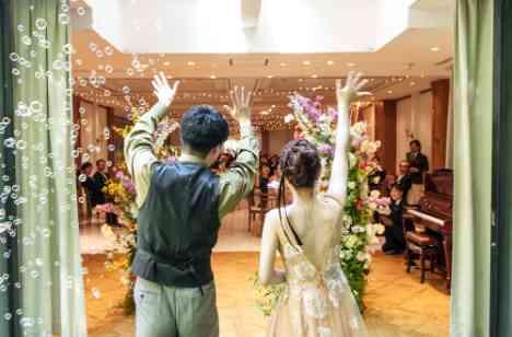 結びのセレモニーの中でエンドロールを上映。おふたりもゲストと一緒に今日一日を思い返しながらこみあげてくる想いが自然と涙としてあふれてきました。大切な家族や友人、みんなに囲まれて今日という日を迎えられてよかった、結婚式挙げてよかった、そんな気持ちになり退場へ。みんなのもとを練り歩き、ラストはガーデンへ。みんなに手を振りながらの笑顔の退場となりました。