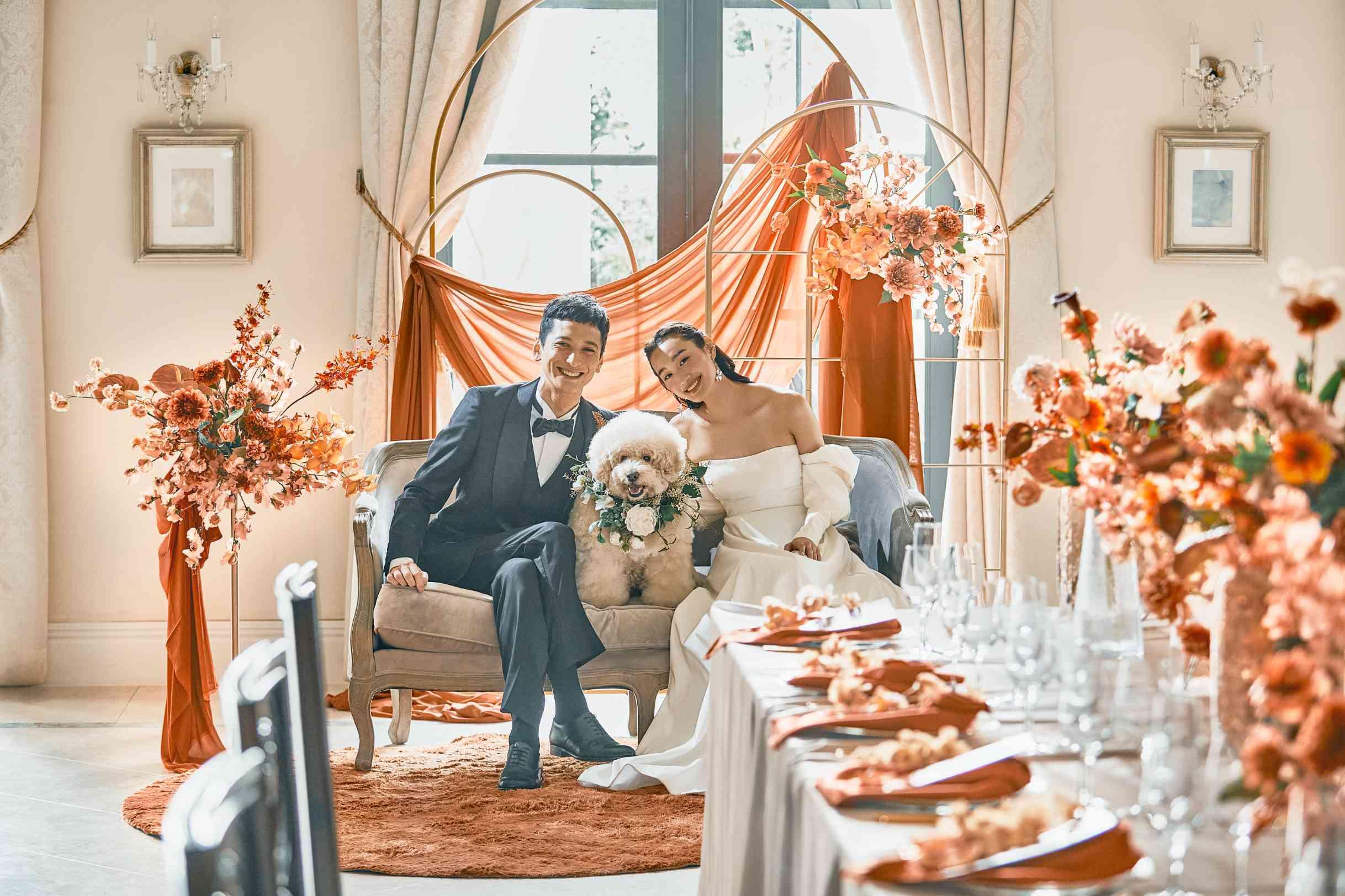大切なゲストをお迎えするウェルカムドッグや挙式のリングドッグ入場、証明書への肉球署名、パーティスペースでペットとゲストたちとのふれあいタイムなど、ペットの可愛い姿が沢山見られるのは貸切邸宅の魅力!