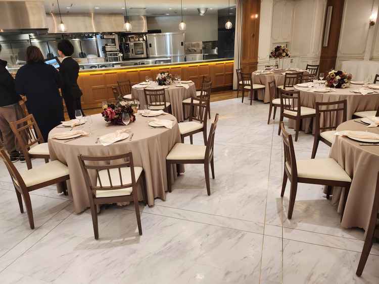 オープンキッチンでライブ感のある料理場がよかったです。 ウェルカムドリンクの設置なども可能でゲストにおもてなしできる設備が整っていました。
