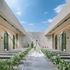 開閉式の天井と⼤きな窓から、⾵が通り抜け、⾃然光が照らし出す。ダイナミックでありながら、余計なものをそぎ落としたシンプルなデザイン。光と⾵、おふたりとゲスト、唯⼀無⼆の瞬間のためのチャペル。