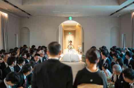 特別な瞬間に込めた想いを改めて皆様に届けたい。そんな想いから新婦様はご自身の声で「天の声」としてバージンロードとベールダウンの意味合いを伝えました。 ご両親にもその声を挙式会場内で聞いていただいたうえでお迎えに。想いが伝わった中でのご入場は、一歩一歩に深い意味が込められた感動的な時間となりました。その想いは自然とゲストの皆様の心にも届き式全体を優しく包み込むような素敵な時間となりました。