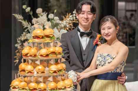 おふたりの初めての共同作業は、定番のウェディングケーキではなく、大好きな“ハンバーガータワー”をご用意! ゲストの皆様からも大きな歓声があがる中、ハンバーガーでの同時ファーストバイトも行われ、会場は笑顔に包まれました。 セレモニー後には、ゲスト全員分のハンバーガーもご用意され、おひとりおひとりにお渡し。 思わず笑顔がこぼれる、おふたりらしい楽しい演出となりました。