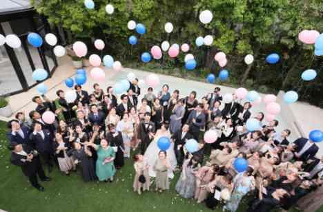 ただ見ているだけの式ではなく、みんなに楽しんでほしい。そんな思いから参加型の演出バルーンリリースを行いました。なんだか大人になってもワクワクするバルーン。ずっと続く大空に「おふたりの幸せがずっと続きますように」願いを込めてみんなでバルーンリリース。ガーデンの緑と空の青さに色とりどりのバルーンが映える、ゲストの方もバルーンが見えなくなるまでずっと写真を撮影されてました。