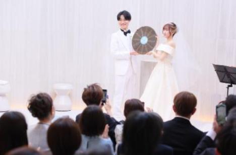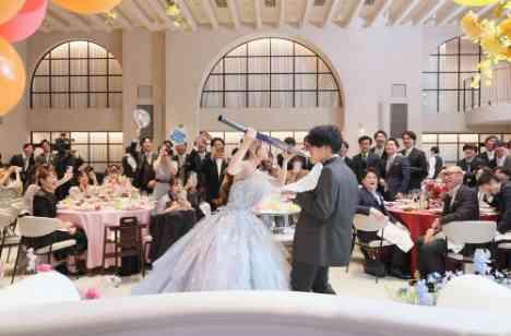 フェスのイメージでいちにちを過ごしたフィナーレはゲスト全員にスタンディングしていただき、お二人の大好きなBGMを流して退場。ゲストと一人一人とハイタッチやハグをし、感謝を伝えながらの退場となりました。 そして退場直前にはフェスのラストのイメージで曲に合わせてビッグクラッカーで華やかに盛り上げました!