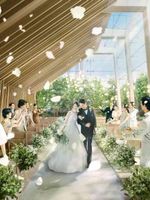 緑×自然光を存分に感じる空間へ!華美な装飾や不自然な仕掛けは必要なく、ふたりとゲスト、上質空間が調和しリラックスムードに