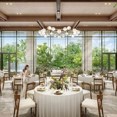◆一面ガラス張りの先に四季を彩る緑*都心リゾートを感じる水*非日常を演出する自然光*お二人もゲストも肩肘張らない「自然体」でいられる空間に♪