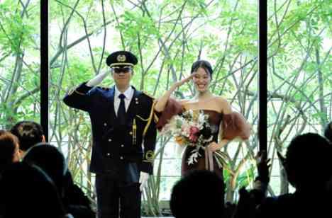 新郎様が着用しているのは、名誉ある賞を受ける時にしか着ることのできない消防士の礼服。一生に一度の結婚式の場で礼服の姿を披露したいとの想いからセカンドミートを行いました。いつも気さくなおふたりですが、結婚式だからこそ味わうことのできる瞬間に、いざ対面した時には、照れ合いながら微笑み合い、忘れられない時間となりました。