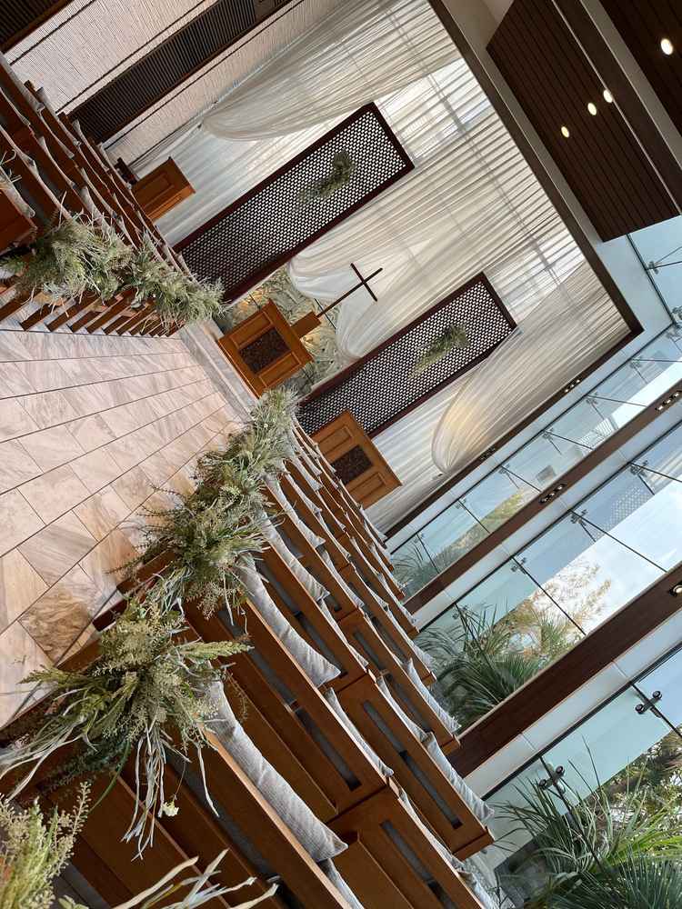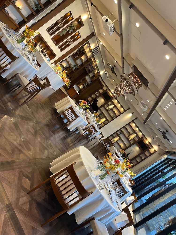 雨の日にテラスに行けないのはとても残念。 そして、チャペルが3階、披露宴が2階、受付が一階の点が高齢者や妊婦には不便さを感じた。