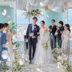 【地上95m!天空のチャペルで感動の入場体験】窓から差し込む自然光と、地上95mの絶景が織りなす特別な空間でリアルな挙式体験を。歩みを進めるごとに広がる美しい景色が、ふたりを輝かせる瞬間を演出。