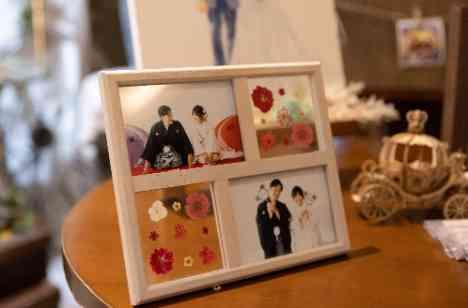 お二人は事前に当日はお召しにならない和装での前撮りを実施していましたので、その写真をお洒落に飾ったウェルカムスペースの装飾にされました。ゲストの皆様もご覧になって写真を撮ったりと盛り上がっておられました。 他にも小さい頃の写真も飾り、親族の方は懐かしいというお言葉をおっしゃってました。 たくさん写真を撮られていたのが印象的でした。