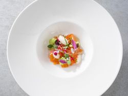 一人一人違うおいしさの感覚を持っているからこそ、事前におふたりと打ち合わせをし、出来る限り調整致します。味付けやゲストの年齢層、アレルギー情報など人それぞれ。『1人前を100皿』。それが私の合言葉です 結婚式での料理は華やかで美しく、素晴らしいが、その見た目とは裏腹に地道な仕事をコツコツとこなし、数々の経験を積むことが重要。全国各地で修業をし、お客様の笑顔が見たいから常に真剣に料理と向き合っています