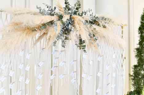 打ち合わせの中で、挙式までの待っていただく間に1人1人へのメッセージカードをエスコートしてお渡ししていただこうとお打合せの中でもお話しておりました。 せっかくであればフォトブースに必ず寄っていただけるようにマクラメのフォトブースにし、お写真を撮って頂きながらおふたりからの心のこもったメッセージを読んでいただいておりました。