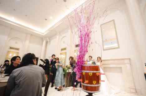 みんなと楽しく盛り上がりたい!とご希望のお2人でございましたので、披露宴前に会場のプールを使用してドロップアンドフライという演出を行いました。 全員でプールに風船を投げ入れ、その後時間差でゲストの驚きの歓声と共に空へ舞い上がるカラフルなバルーン。 皆様が自然と笑顔になり楽しめるそんなお時間を過ごせました!