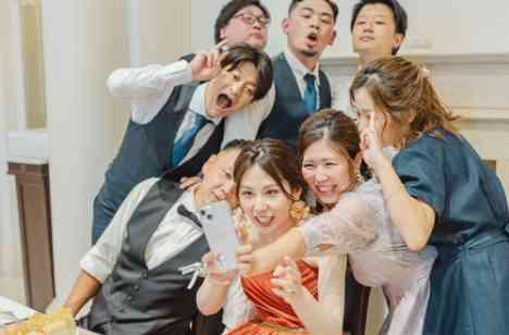 ご披露宴では、皆様とお話するお時間や写真を撮る時間の歓談を多くとりたいというお2人でした。 そのため、演出はあまり取り入れず歓談をメインにしたところゲストの方とゆっくり話して、お写真を撮影していただけたので皆様と楽しい表情でのお写真を残すことができました。 スタッフが撮影するのではなく、自身で撮影することで楽しい表情を残していただけました。
