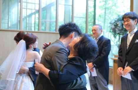 今まで大切に育ててくださった親御様。 そんな親御様にはご結婚式の挙式前に誰よりも一番に晴れ姿を見ていただきたい。 そこで、チャペル内でファミリーミートのお時間をとりました。 思わず感情が込み上げて、親御様とハグをするそんな素敵なシーンとなりました。 挙式前にこのお時間をつくるからこそ、親御様へしっかりと感謝を伝えることができます。