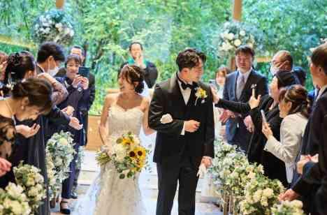 緑に囲まれた温かみのある挙式会場で、大切なゲストの前で誓い合う挙式。 ゲストとご新郎ご新婦様の距離が近いからこそ、ゲスト皆様の笑顔や温もりを感じ、沢山のおめでとうの祝福が聞こえてきます。 ゲスト全員の顔を見ながら、誓い合うお2人。 お2人を心から祝福しているゲスト。涙あり笑顔ありの温かい挙式になります!