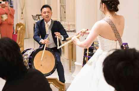 お色直し中座後に太鼓を担ぎサプライズ登場