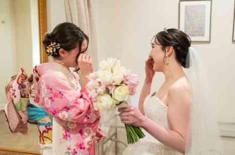 お姉様のご結婚式ということでアメリカから来日してご列席くださった妹様。 日本のご結婚式は初めて参加されるとのことで、素敵なお着物をお召しくださりご列席くださいました。 当日、妹様にはサプライズで新婦様とのファーストミートのお時間を設けさせていただき、本番前にご対面。 お互いの姿を見て涙されているおふたりの姿がとても素敵でした。