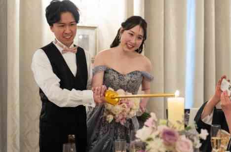 カラードレスにお召し替えをし、入場後にそのままゲストの皆様のお席までお進みいただきキャンドルサービスを。 会場内を少し暗くして、よりキャンドルが映えるような雰囲気で空間を灯していきます。 新郎新婦様がお席の近くまでお越しくださるので、ゲストの方もうれしい演出です。 ナイトウェディングには特にオススメの演出でもあります。