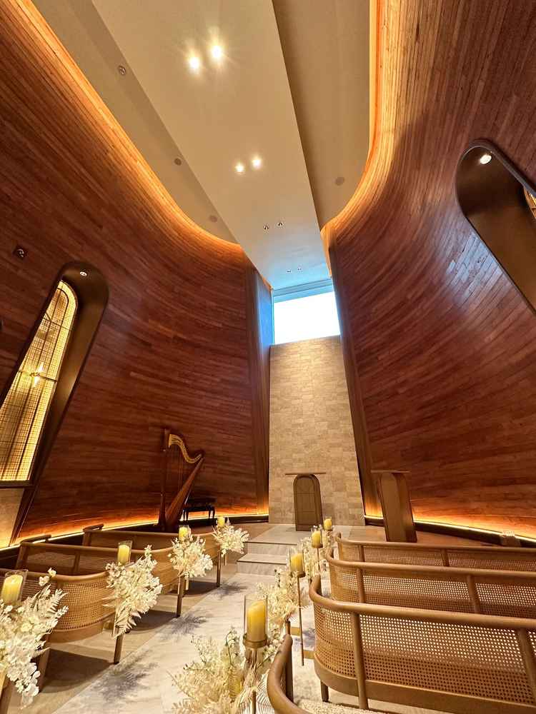 チャペルが想像以上のクオリティで心を打たれた。高さもあり、階数も少ないため移動がしやすく、ゲストの負担も少なそう。