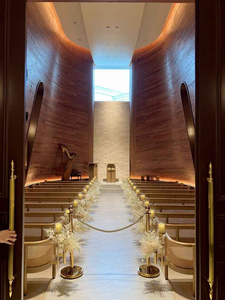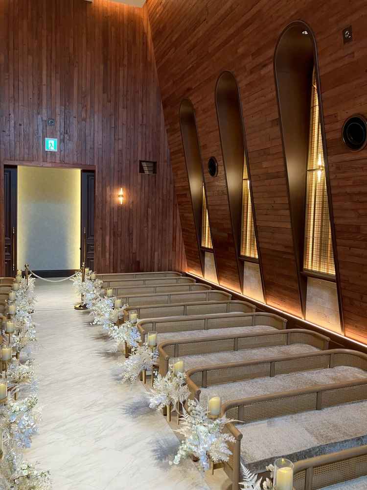 外観から内装まで落ち着いた雰囲気があり、チャペルがとても魅力的だった。 新郎新婦、親族、ゲスト控室も素敵だった。