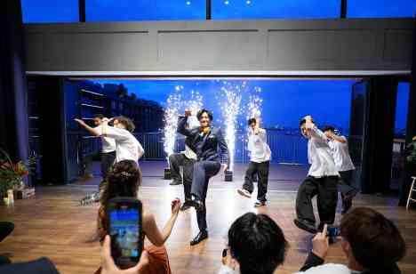 ダンスサークルで出逢ったおふたり。初めて会場に見学にいらっしゃった際にはダンスを余興でしたいかも!という話も出ていたのですが、途中でうやむやに・・・。しかし新郎様は内緒で仲間たちとこっそりダンスの準備を進めていました。お色直し後の披露宴後半、今まであったステージが取り払われダンサーたちが登場!夜景と花火をバックに繰り広げられたパフォーマンスに新婦様もゲストも驚きと心躍る時間になりました。