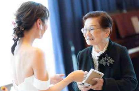 お母様と共に新婦様を育ててくださった大好きなおばあちゃん。忙しく働くお母様の代わりにいつも遊びに連れて行ってくれたのはおばあちゃんでした。今でも台風や地震の時には心配してLINEをくださるおばあちゃんに「いつもありがとう」を伝えたくて、お色直しの中座でお呼び出ししました。結婚式当日の朝にドレス姿で一緒に撮った写真をプレゼント。その写真は今もご自宅に飾られているそうです。