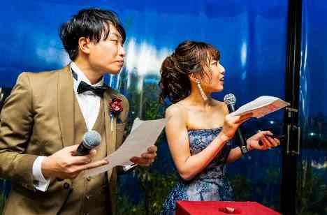 ゲストには開宴までの間にお二人にまつわる「エピソードビンゴ」を行って頂きました。お色直し入場後に答え合わせ。お二人自らマイクを持ち、正解発表と解説を行ってくださいました。なかなか高度な、ひっかけ問題もたくさん・・・!でしたが、見事ビンゴになったゲストには豪華景品をプレゼント★とても盛り上がりました!!