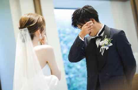 とても人見知りで緊張しいな新郎様。当日も緊張感が漂っていましたがファーストミートで新婦様と対面した瞬間に涙を流されそれには新婦様も周りのスタッフもびっくり。大好きな新婦様の美しい姿を見て感情があふれた瞬間でした。それにつられてか新婦様も笑いながらも涙を。ほっこり温かい気持ちになる、かわいらしい瞬間でした。