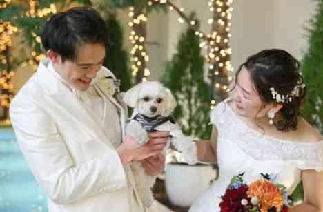 "アットホームな温かい式にしたい"そんな思いから「人前式」を選んだおふたり。おふたりで考えた誓いの言葉を披露し、大好きなゲストの皆様に囲まれ笑顔に包まれる挙式となりました。 ご新郎様のご実家のわんちゃんにリングを運んでいただき、大切な家族のわんちゃんもおふたりと一緒に結婚式を盛り上げてくれました。