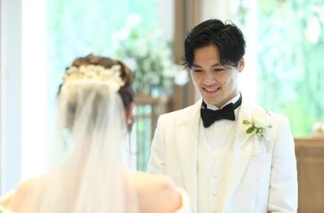 当日、ご新婦様のドレス姿をとっても楽しみにしてくださっていたご新郎様。ドレスは一度ご試着の際にご覧いただいておりましたが、一生に一度の瞬間ということで、ファーストミートはやりたい!と仰ってくださっていました。ファーストミート直前はとても緊張されていたおふたりでしたが、お互いの姿を見るととっても素敵な笑顔になりました。挙式前のいちばん緊張する瞬間でしたが、おふたりのリラックス出来た時間になりました。