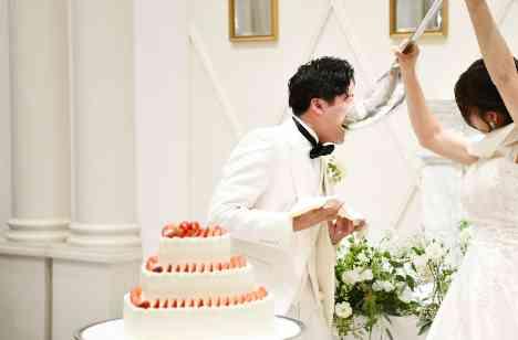 ご新婦様からのファーストバイトで、ご新郎様のお顔よりも大きなスプーンを使用しました。お打ち合わせの段階からビッグスプーンでファーストバイトをすることを楽しみにしていてくださったご新婦様。ビッグスプーンが登場した際はゲストの方も大盛り上がり!ご新郎様は大きな一口でケーキをお召し上がりいただき、会場内は笑いに包まれました。