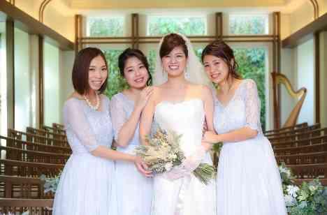 家族、学生時代からのご友人様をとても大切にされているおふたりです。ゲストとの皆様にはリラックスして楽しんでいただきたいとお考えでした。挙式ではご新婦様の親友の皆様がブライズメイドをしてくださりました。