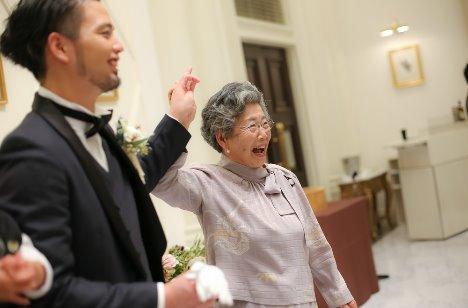 ご新郎様はおばあ様とご中座を行いました。小さな頃から可愛がってくれたおばあ様に何か恩返しができたらとご新郎様よりご希望がございました。お呼び出しの際には、おばあ様はとても素敵な笑顔で、ご新郎様の手を握り締めていました。