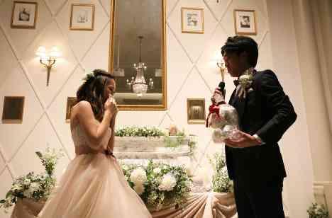 青森県ご出身のご新婦様のご友人様の中には当日会場へお越しになれないゲストもいらっしゃいました そんなご新婦様のためにご新郎様は青森まで行き、友人の方、おばあ様からメッセージを集めてきてくださいました サプライズムービーをお流しし、メッセージの書かれたぬいぐるみをサプライズでお渡しいただきました