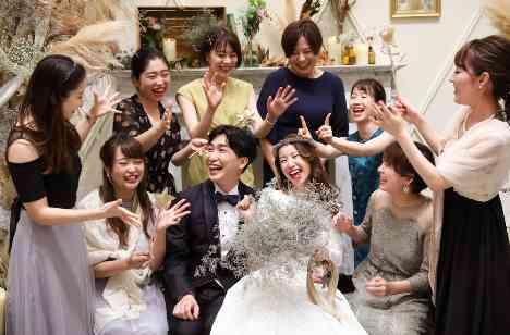 とにかくこれまでお世話になった、支えてくれたみんなとたくさん触れ合って、たくさん話したい! そして、結婚式が終わって思い返したときにも感じられるようなキラキラした思い出を創りたい! 当日はおふたりの周りにはゲストがたえなかったです。 大好きな皆様に囲まれて、ずっと笑顔のおふたり。