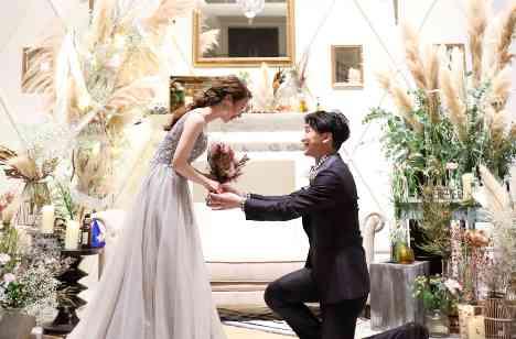 双子のお姉様とご新郎で協力してサプライズをしました。参列が叶わなかったゲストからのメッセージをお姉様とご新郎が集めてきてくださいました。そして、ラストにはお姉様からのお手紙と、ご新郎からの「幸せにします」の言葉と共に花束のプレゼント! とても驚きながらも、幸せいっぱいの表情が印象的でした。