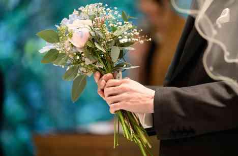 尊敬、感謝、笑顔、愛情、信頼、ポジティブ、愛嬌、協力、思いやり、誠実、安心感、努力。新郎から新婦への12の誓いを小花束にのせて。サプライズ指名したゲストから小花束を集めてブーケをつくり、新婦へプレゼントしました。