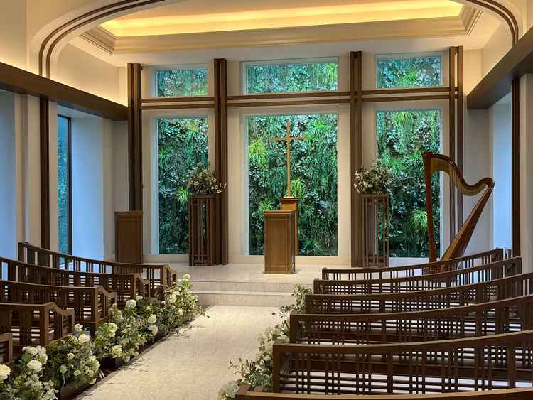 都会の中に現れる、森を感じる温もりのあるチャペル