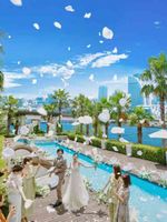 非日常感あふれる「海と空のクラブリゾート」 横浜にあるとは思えないほどの開放的なガーデンを使ってのガーデン挙式!みなとみらいの海と大切なゲストに誓う挙式は一生の思い出になるはず!他の会場ではできない爽快な挙式をゲストと一緒に楽しもう!