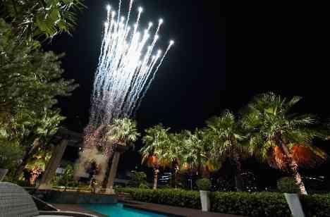 コットンハーバークラブでしかできない打ち上げ花火。 花火に惹かれ会場を決定してくださる方もいるほど、人気な演出です。 当日はお2人からゲストへのサプライズとして披露宴のクライマックスに打ち上げ、全員で祝福の言葉と共に、この後の歓談が温かい時間になりました ヤシの木の間のステージから打ちあがる花火は、日本にいることをわすれられるくらいリゾート感溢れる空間でした。