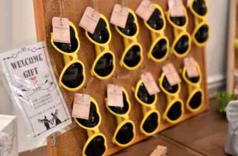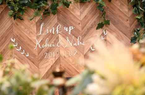 Link Upという結婚式のテーマに基づいてゲストのみんなとの繋がりをリンクコーデで表現。男性にはサングラス、女性にはフラワーリングを挙式前に手に取って頂き、お写真を撮る際のアイテムとしても楽しんで頂きました♪
