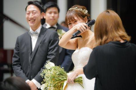 新婦様は大好きな妹・弟様と。人前で話すことが苦手なご新婦様ですが妹・弟様へメッセージをお伝えいただきました。普段はクールだという妹様が涙されているお姿をみてご新婦様も涙されておりとても心温まるシーンになりました。ご新郎様は昔からかわいがっていただいているというお姉さまと。BGMに合わせてご新郎様もお姉さまもノリノリで、会場内のゲストも一緒に盛り上がったシーンになりました。