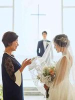 ベールダウンのセレモニーは親御様との絆を感じる感動的な瞬間。 これまでの溢れる想いをベールに込めて。 正面からきらきら差し込む自然光がベールを輝かせ、より一層神秘的な瞬間を演出します。 自然が織りなす演出はその日にしか体験できない唯一の時間