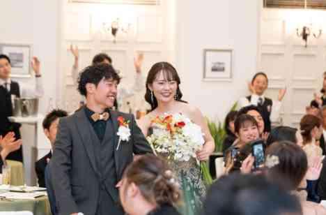 こんなに盛り上がる結婚式今までなかったと言ってもらえたご様子。スタッフまで楽しくなってしまうくらい、素敵なBGMに乗せられて、みんなが歌って踊りたくなる入場でスタート。ゲストみんなが楽しそうで、距離感も近い素敵なご披露宴。きっとおふたりの最高の笑顔がつくった幸せな空間でした。友人スピーチ(あいうえお作文で)・ガーデンでのケーキ入刀などゲスト参加型の時間で皆さまも楽しんでくださっていました。