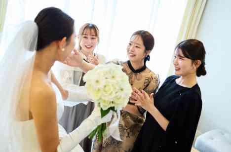 緊張しがちな新婦様に提案したのは、ご自身を支えてくれた大切な親友と過ごす時間。せっかくの一日は一分一秒でも大切にしてほしい、緊張して過ぎていくだけではもったいないと、挙式が始まる前にご友人様とのご対面後、一緒に過ごしていただきました。たわいのない会話をしたりお写真を撮ったり過ごすことで新婦様も表情が和らぎ、その日一日をリラックスして過ごせるきっかけとなりました。