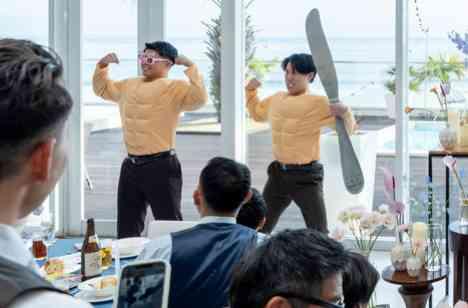 ゲストのことが大事で大好きな愛されキャラのお二人。そんなお二人の結婚式のスタートはやはりゲストと過ごす時間から始まります。もちろん結婚式は涙よりも笑いを届けたい。緊張されている新郎様にはサプライズでフェイクミートのお時間を作りました。ゲストにとってもお二人にとってもお腹の底から笑ってしまう空間が生れました。そのおかげでお二人のファーストミートは緊張せずいつもの二人のビックスマイルが見れました!