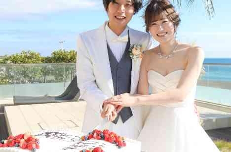 せっかく海の近くて結婚式するなら・・・と お二人と考えてケーキセレモニーを外で行いました! 当日、とても晴れていて12月なのにとても暖かく気持ちが良いそよ風の中、みなさんに祝福されながらのケーキセレモニーができました!