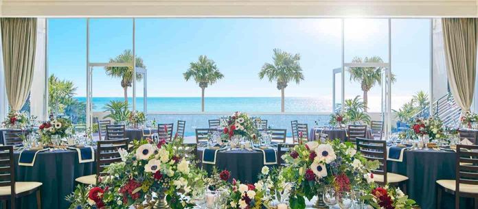 一面ガラス張り、正面に湘南の海が広がる解放的なパーティ会場!