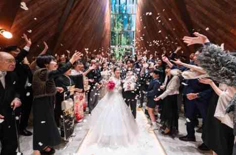 いつでもどこでも好きな場所で、好きなことができるのが、貸切ならではのポイント。お二人のお気に入りのチャペルが、挙式でしか使えないのはもったいないということで、チャペルでのフラワーシャワーにしました。木目調の色味に花びらも映える素敵なお写真も残りました。ゲストとの集合写真や、プレゼントトスもチャペルで行い、さまざまなお写真が残りました。